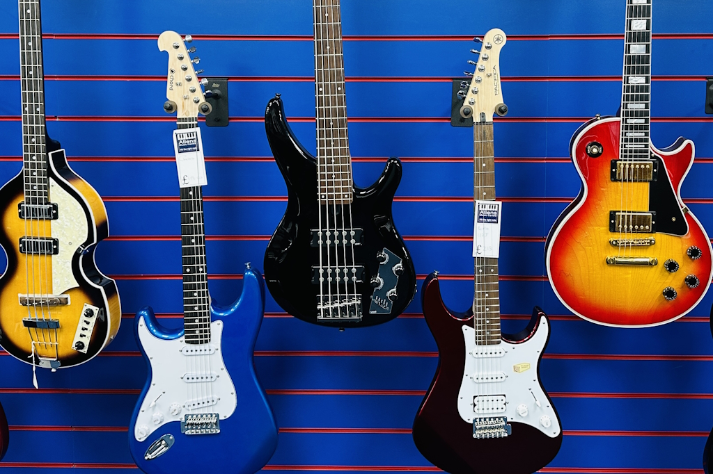 We stock a wide range of acoustic, electric, classical and bass guitars from household names including Yamaha, EKO, Chord and Vintage. A selection of Guitar amplifiers including brands like Line 6 can be seen. We also stock a wide range of quality pre-loved Guitars and Basses.