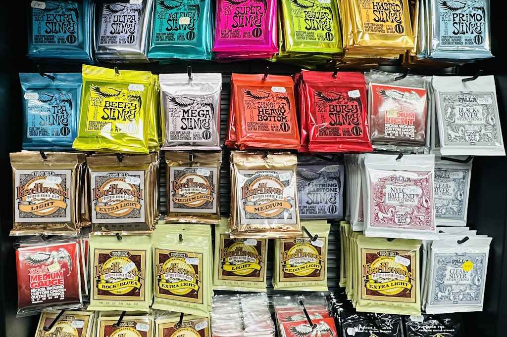 A highly varied library of Strings are stocked (both full sets and individually), plus plectrums, tuners, leads, straps, cases and more.