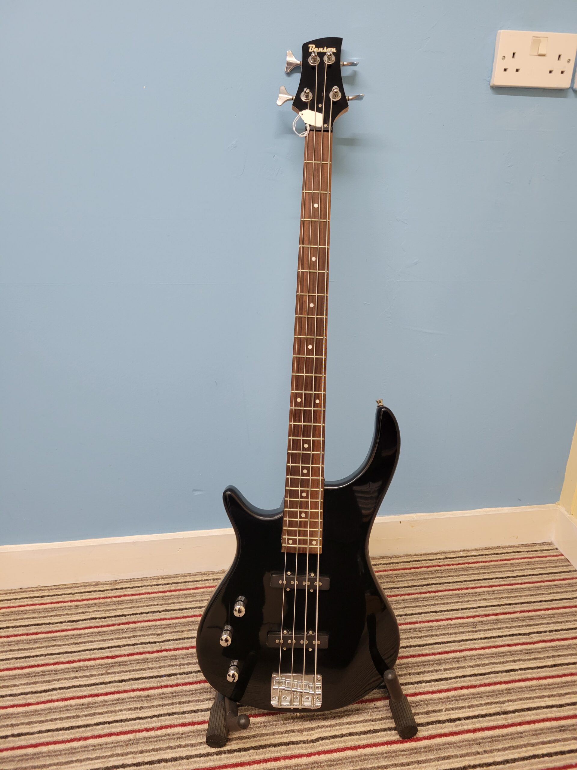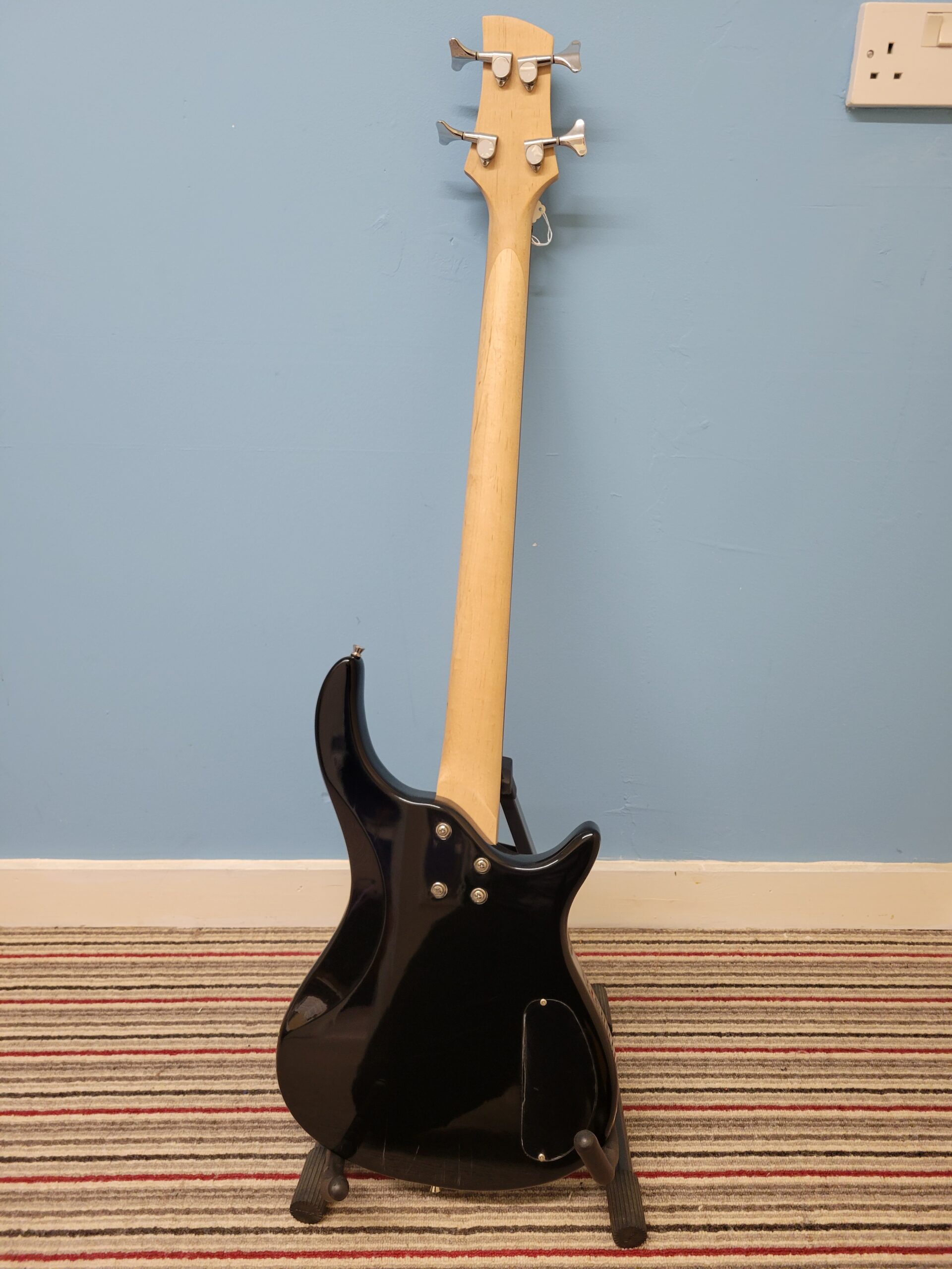 This electric bass is a great starter instrument, especially for those interested in rock and blues. It has an ergonomic double cutaway body design and is well weighted for comfort and balance.