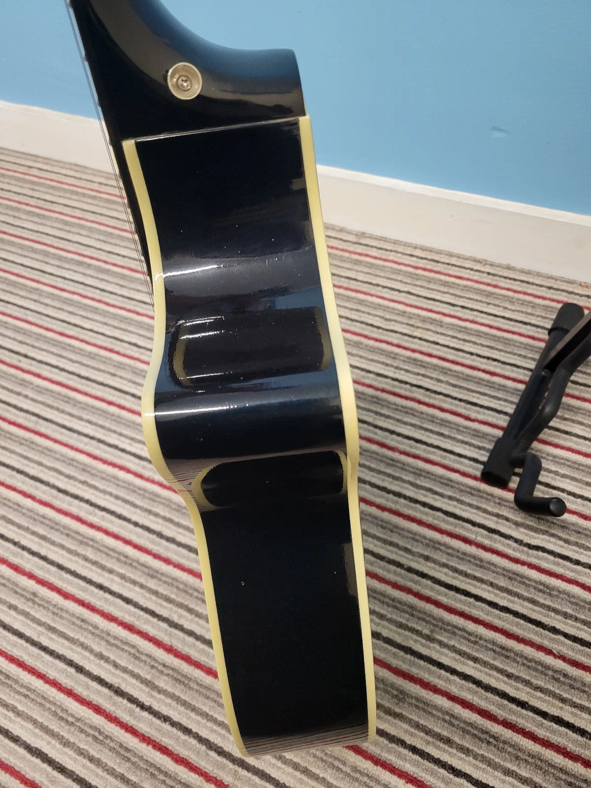 For an instrument of its age, it is in good condition, and the frets have little wear on them.