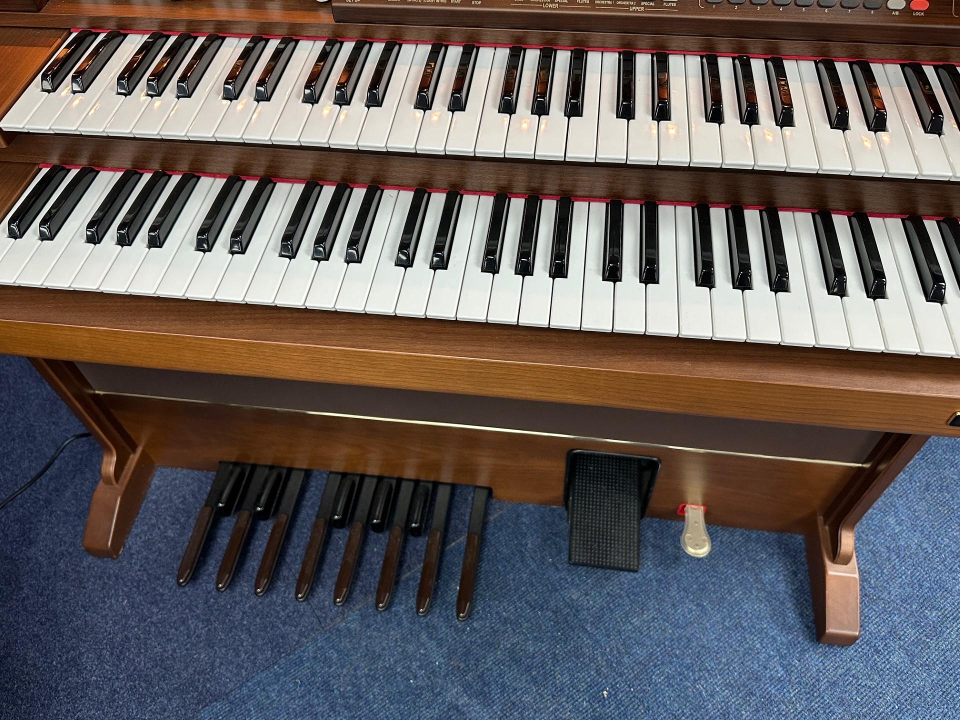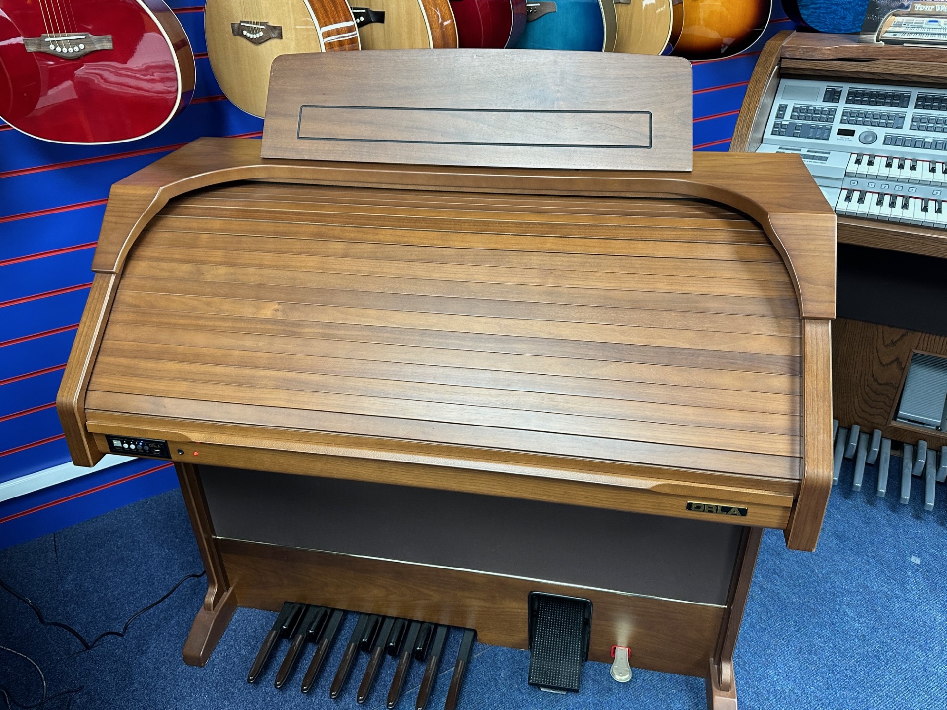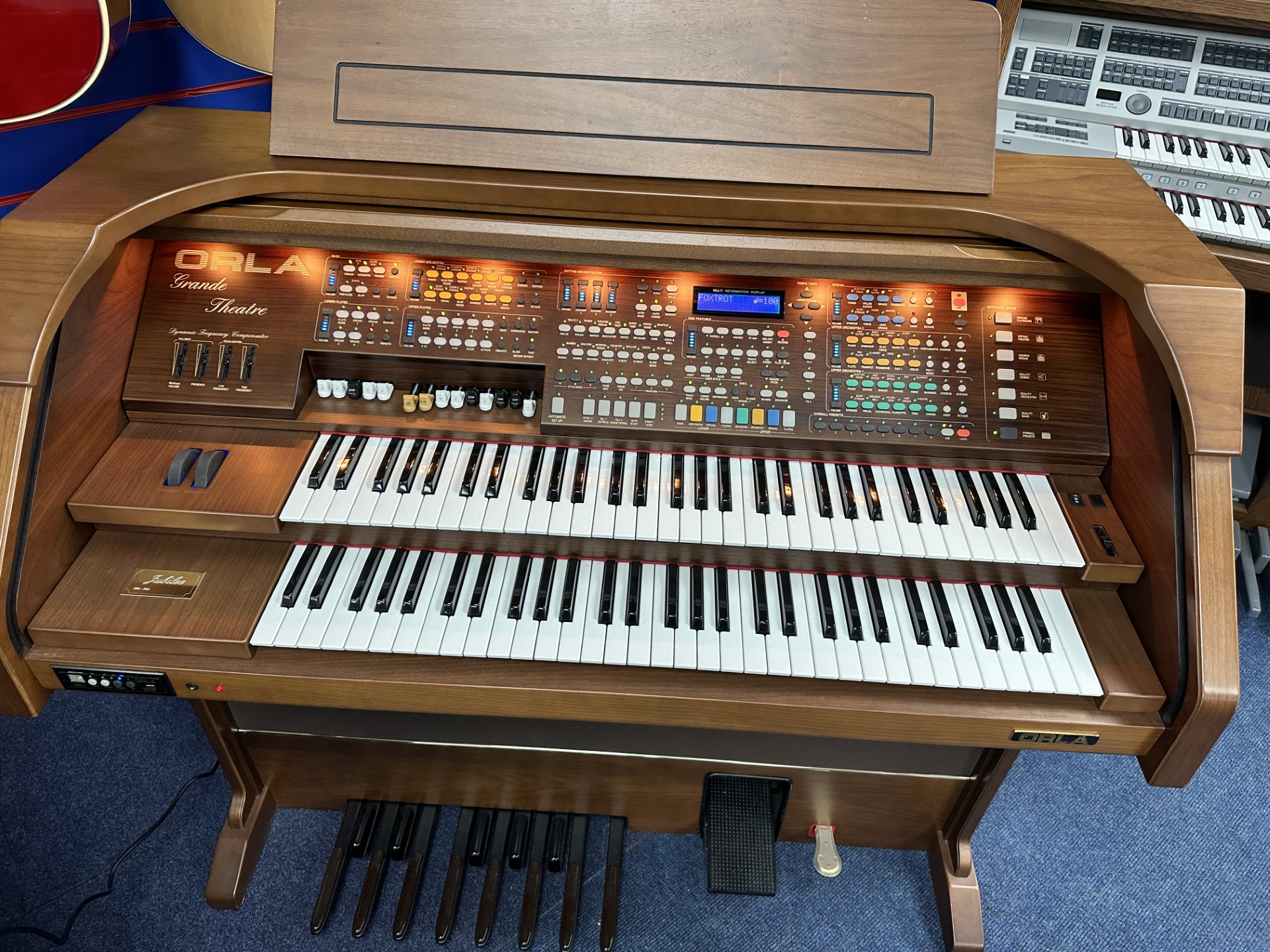 This is the Orla Grand Theatre Jubilee model in excellent condition with USB too! Very popular model with many features inside a walnut cabinet with lid. This pre-owned organ is an ideal instrument for the home organ player. The well designed compact console features a comprehensive registration feature with great sound settings for lots of popular music using some of the most up to date Orla voices. There are 16 registrations in categories of Theatre organ, Church organ, Vintage organs, combo as well as Orchestral and Band settings packed into this stylish console. Two 61 note manuals Improved organ sounds including newer Theatre organ voicing Automatic set up, auto bass and auto chord. Registration buttons Banks A & B (eight per bank) Registration settings (Automatic Organ) Rhythm lock feature. Organ Flute bars (Hammond style) Tone settings 90 Rhythms (three variations) Sustain pedal Volume pedal Bass pedals (13-note)