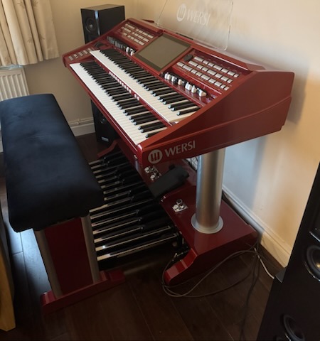 The stunning pre-owned OAX900 contemporary Wersi in the red finish