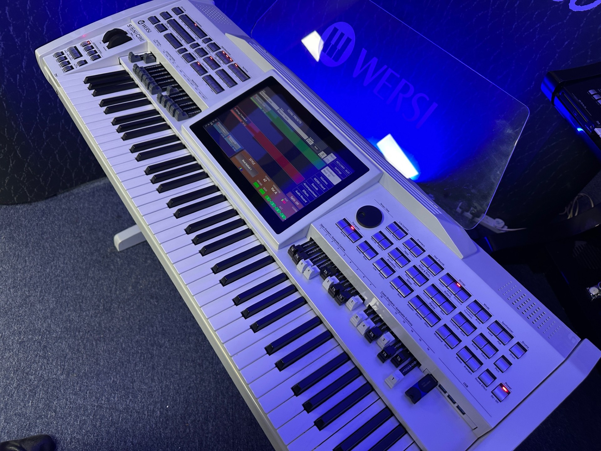 This OAX1 is in the pearlescent white finish and includes a matching Wersi stand